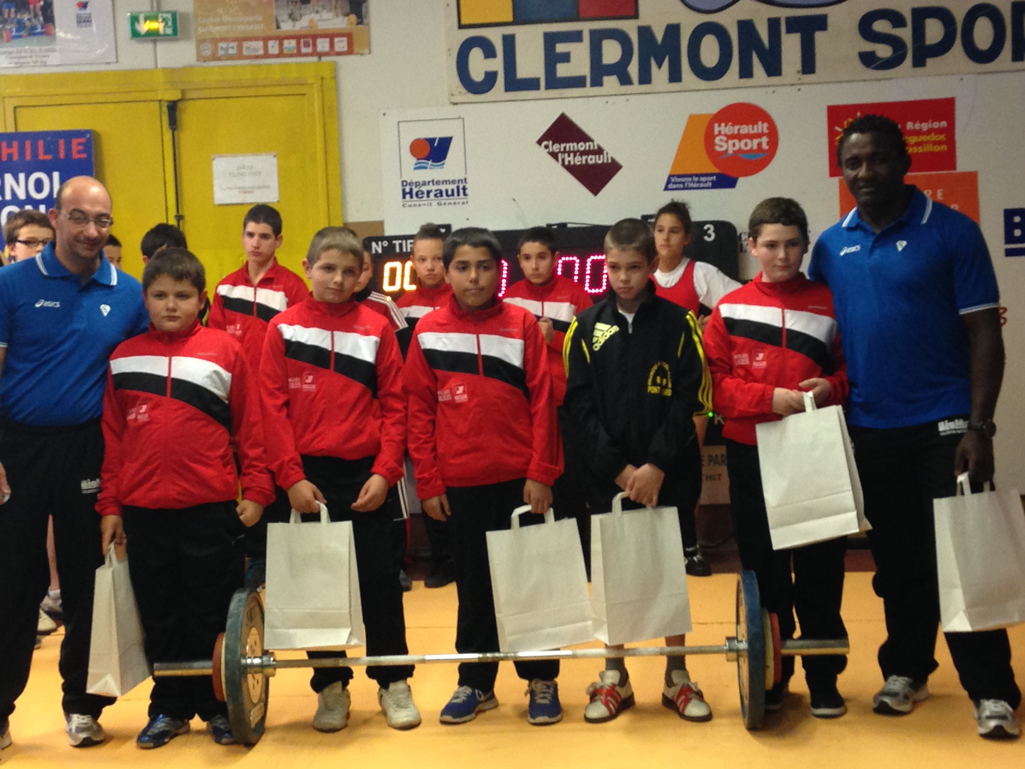 Bien que favori et objectif de début de saison les Minimes démarraient de fort belle manière cette journée du 24 Mai 2014, auteur d’un match parfait les jeunes pousses clermontaises s’imposent devant Monteux et le club local Comines. Avec 388 points meilleurs total de la saison les heraultais Enzo Sergent, Jeremy Peiguet et Alexandre Giambrone inscrivaient leurs noms au Palmarès de ce prestigieux trophée. Enzo Sergent remportant même le classement individuel de meilleur athlète de la compétition avec 58kg à l’Arraché, 80kg à l’Epaulé Jeté pour seulement 49kg de Poids de Corps.