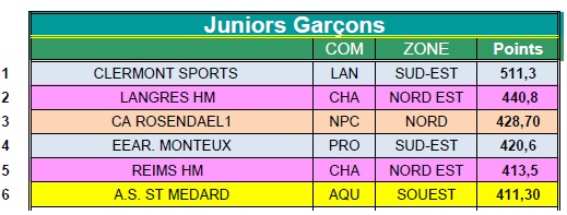 Deux y sont parvenues avec tout d’abord et c'est un petit exploit les Cadets, l’équipe composée de Enzo Sergent, Alexandre Giambrome (tous deux Champion de France Minime) et Gabriel Fernandez totalise 296 points et se classe deuxième derrière Villeneuve Loubet 315 points.