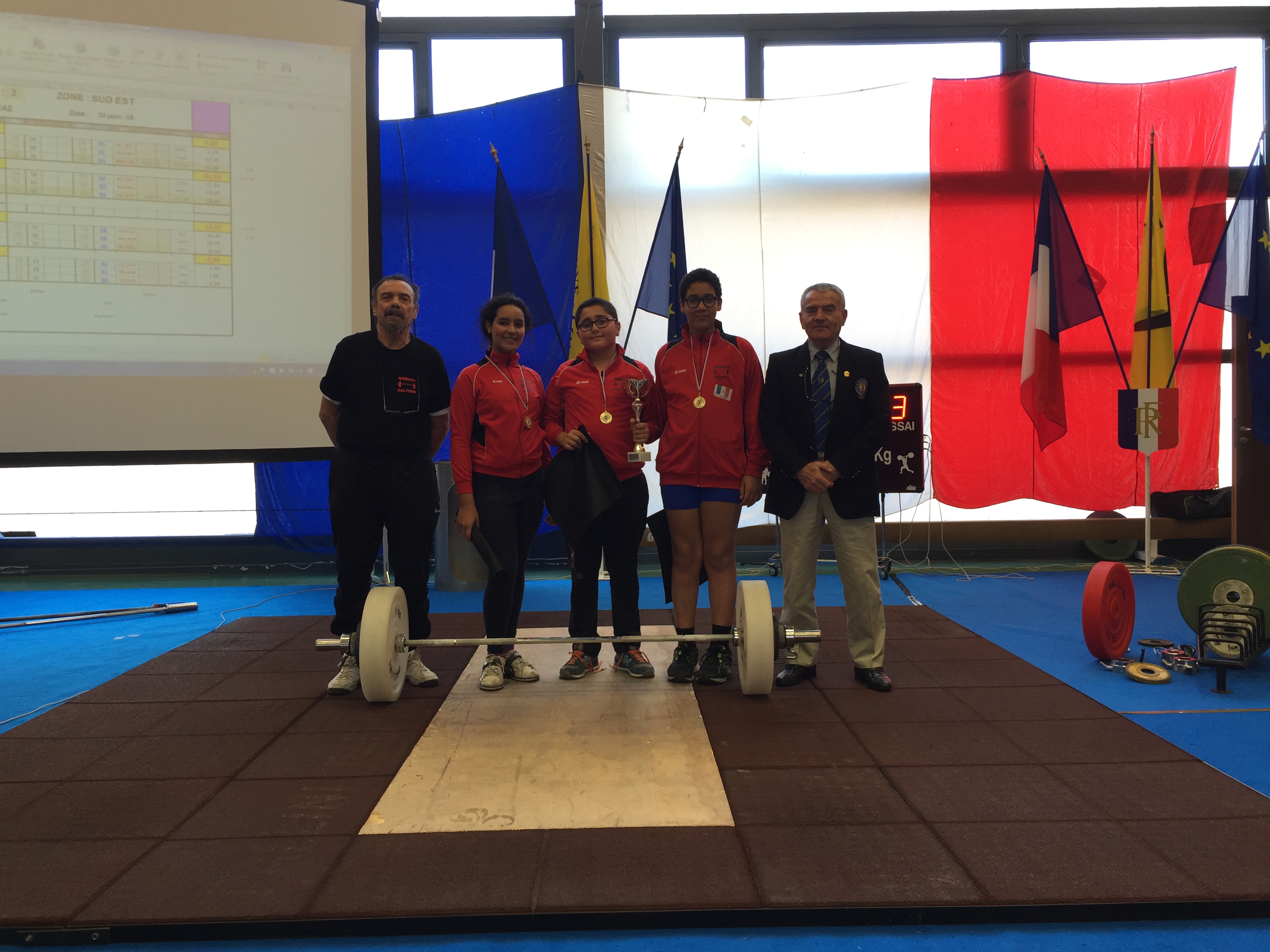 L'équipe du Frontignan AC se classe 1ère avec 1099 pts IWF: Caroline SUNE, Pauline BEULE, Adrien CHAPELLIER, Fabien RIERA, Jérôme CARMONA